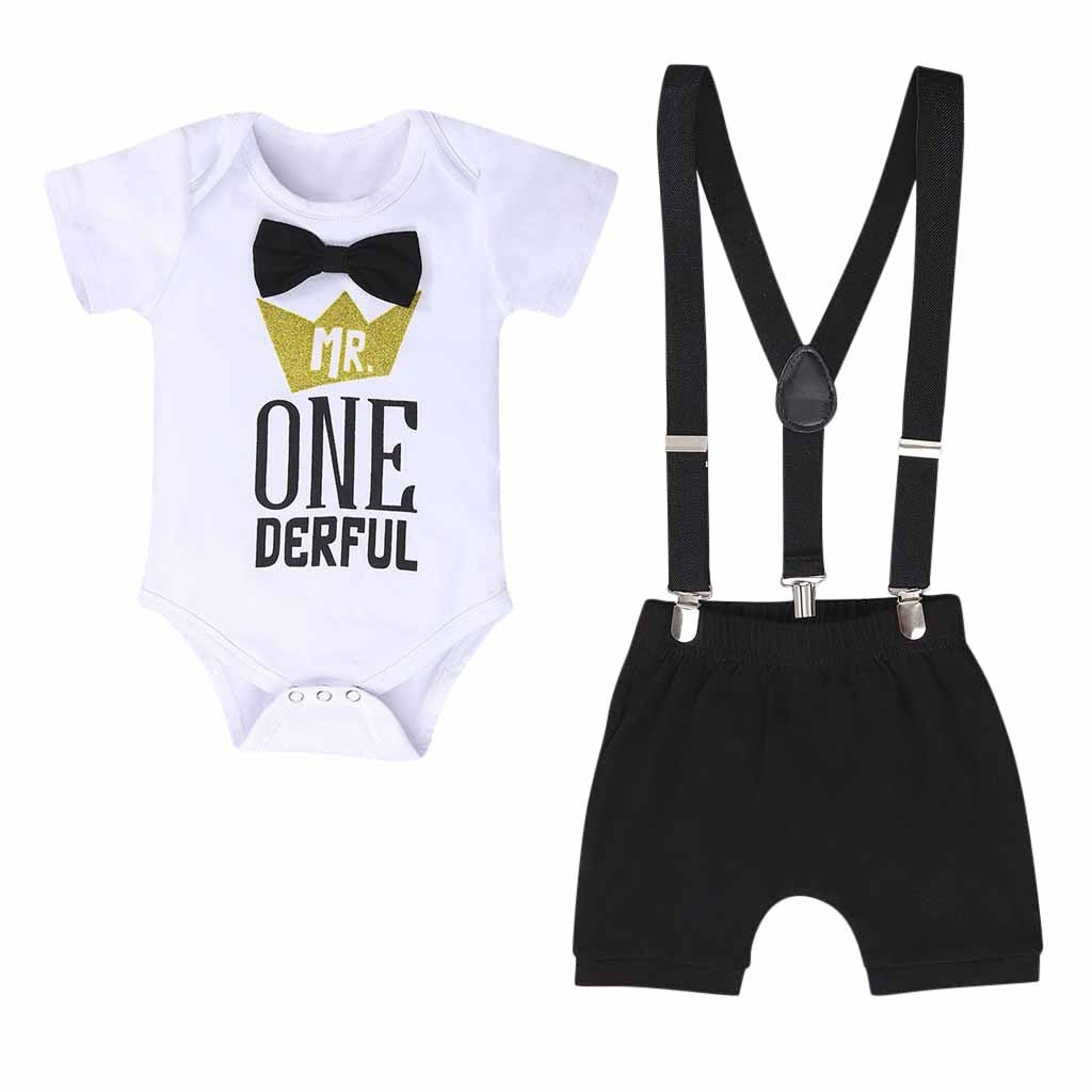 Mr. "One Derful" Short with Suspenders Outfit