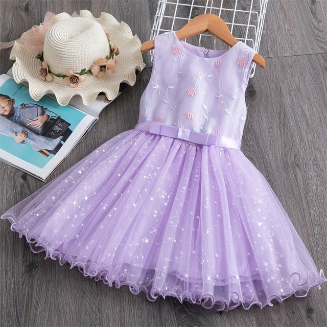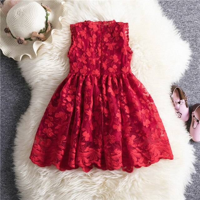Summer Toddler Girls Lace Cake Dress Kids Sleeveless Floral Mesh Wedding Dresses Children Clothing For Baby Girls 3 to 8 Years