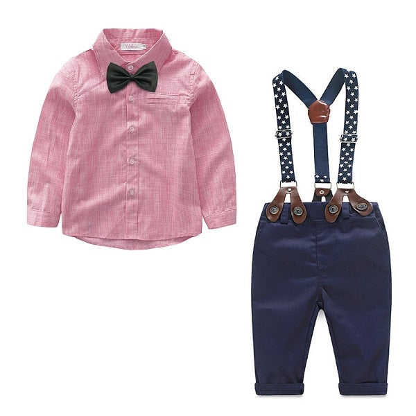 Baby Boy Suspender Set with Button Up Shirt with Bow Tie